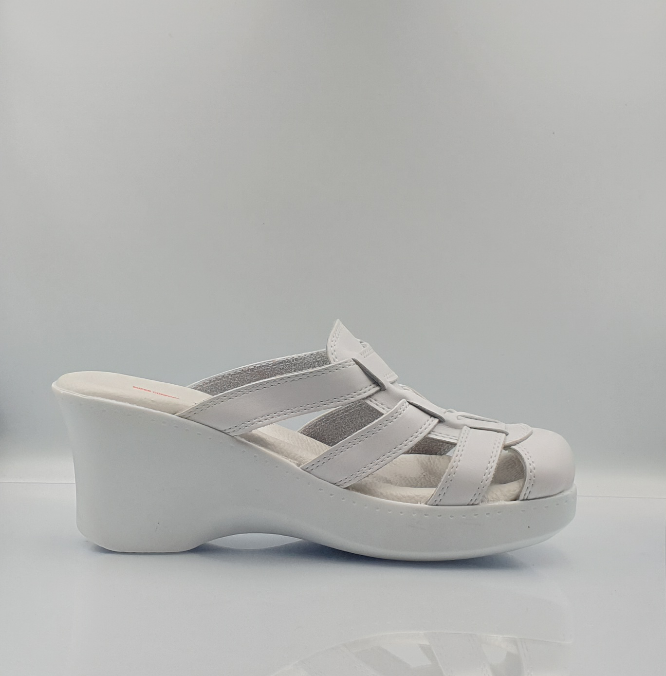 Modelul de vara simplu pe culoare alba este dotat cu un toc inalt de 7 cm, asigurand un confort sporit si totodata atenueaza socurile aparute la mersul lung si repetat. Definitia confortului este redată de către Promedi, aceasta varianta de saboti vine cu o talpa din spuma din poliuretan care se potrivesc de minune picioarelor dumneavoastra, iar in combinatie cu Confort System, un material usor din spuma care se ataseaza pe talpa ca o suspensie, confortul este dus la un alt nivel. Temperaturile mari pe timpul verii pot face picioarele sa transpire foarte usor, iar o solutie pentru aceasta problema sunt gaurile de aerisire din lateral, dar si pe talpa, care permit piciorului sa respire fara probleme, evitand in acelasi timp si mirosurile neplacute de transpiratie care se pot depune pe saboti, devenind foarte greu de curatat chiar si dupa mai multe spalari.